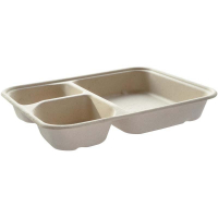 Cukurniedru iepakojums Cukurniedru šķiedras trauki, 165 x 215 x 35 mm, 3 nodalījumi, 50 gab. iepakoj...