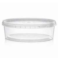 Plastmasas konteineri ar vākiem Konteiners 330ml 150mm ovāls ar drošības slēdzi, bez vāka, caurspīdī...