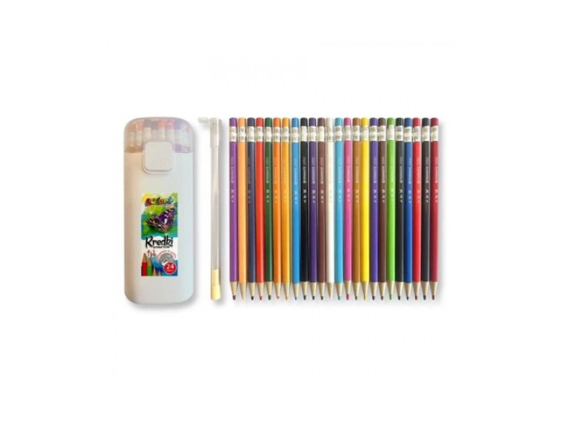 Komplekts ar 24 grafīta zīmuļiem ar 2,5 mm biezu serdeni. Automātiska serdeņa izstumšana, nospiežot pogu. Komplektā ietilpst mini asināmais stieņiem. Viss iepakots izturīgā un ērtā penālī, kas pasargā saturu no bojājumiem.