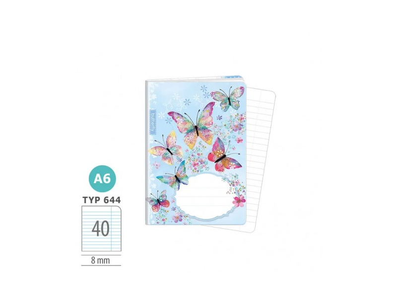 Burtnīca A6 TYPE 644 Butterfly, formāts A6, 40 lapas. Neatņemama skolas piederumu sastāvdaļa. Piemērota arī birojam.