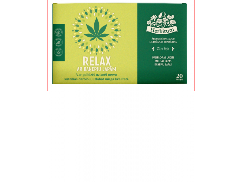 Zāļu tēja HERBITUM Relax ar kaņepju lapām, 1.5gx20gab