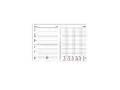 Produkta apraksts Kalendārā daļa, kas piemērota dienasgrāmatām Quadro. Kalendārs ar vienu nedēļu atvērumā un vietu piezīmēm (tikai latviešu valodā). Iesiets ar spirāli.