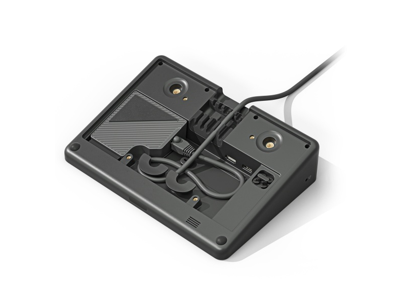 Featuring a 10.1” touchscreen and silent, fan-free design, Logitech Tap connects to the host PC with a 10-meter (32.8 ft) plenum-rated Logitech Strong USB cable. Optimized for the seating layouts and acoustics found in smaller rooms, MeetUp mounts at the display and delivers HD video and clear audio, while RightSight™ auto-framing keeps everyone in the picture.