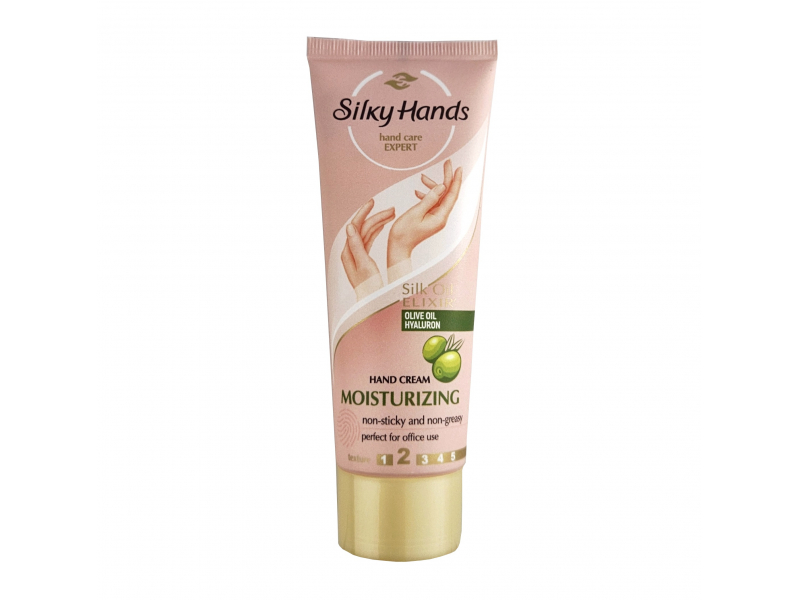 Ar olīveļļu un hialuronu. Viegla tekstūra, bez lipīguma un taukainuma. Intensīvi piesātina ādu ar mitrumu un novērš sausumu visas dienas garumā. Silk Oil Elixir formula ar mikroeļļām un zīda proteīniem pastiprina krēma darbību un aktivizē ādas spēju saglabāt mitrumu. Regulāra roku krēma lietošana ne retāk kā 2 reizes dienā kompensē zaudēto mitrumu un palēnina tā zudumu. Lietošana: uzklājiet uz tīras, sausas ādas, maigi iemasējot, līdz krēms pilnībā uzsūcas. Lietojiet pēc nepieciešamības.