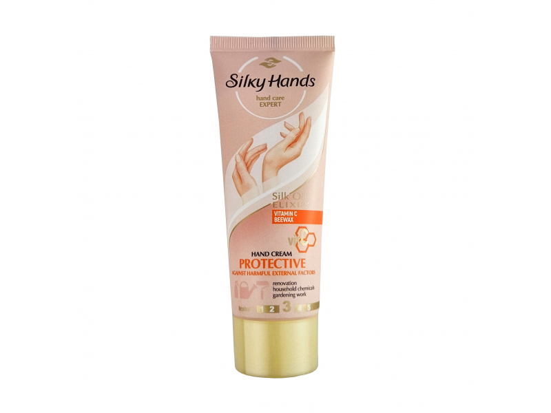 Ar C vitamīnu un bišu vasku. Aizsargājošs roku krēms ar Silk Oil Elixir formulu, kas bagātināta ar C vitamīnu, ir īpaši izstrādāts nelabvēlīgiem apkārtējās vides faktoriem pakļautās roku ādas papildu aizsardzībai. Krēma pārklājošā tekstūra veido aktīvu aizsargbarjeru, savukārt barojošās sastāvdaļas mīkstina ādu un ievērojami uzlabo tās dabiskās aizsargfunkcijas.