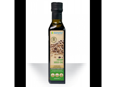 Kaņepju eļļa ir 100% dabīgs produkts. Eļļu iegūst ar videi visdraudzīgāko aukstās presēšanas metodi, kas ļauj saglabāt garšu, aromātu un vērtīgas vielas to sākotnējā formā. Kaņepju sēklu eļļa ir bagāta ar antioksidantiem, fitosterīniem, taukos šķīstošiem vitamīniem un polinepiesātinātām taukskābēm Omega 3 un Omega 6. Sabalansēta linolskābes un linolskābes (54% un 15%) kombinācija labvēlīgi ietekmē sirds un asinsvadu sistēmu, palīdz novērst iekaisuma slimības un normalizē svaru, uzlabo organisma vispārējo stāvokli. Kaņepju eļļa ir tradicionāls krievu virtuves produkts, tai ir augsta bioloģiskā pieejamība, un organisms to pilnībā absorbē. Tam ir patīkams augu aromāts un garša, harmoniski sader ar salātiem, dārzeņu ēdieniem un sālījumiem. Pēdējā laikā par šīm polinepiesātinātajām taukskābēm arvien biežāk tiek runāts par vitāli svarīgām un neaizstājamām cilvēka veselībai taukskābēm. Visi tauki, kas nonāk mūsu organismā ar pārtiku, tiek sadalīti piesātinātos un nepiesātinātos. Nepiesātinātajām taukskābēm ir divkārša saite starp oglekļa atomiem, un, ja ir viena saite, tad taukus sauc par mononepiesātinātiem (tas ir Omega-9 tauki), ja tādu ir daudz - polinepiesātinātās (Omega-3 un Omega-6). Abas šīs vielas ir atrodamas dažādos pārtikas avotos. Omega-3 ir atrodama galvenokārt zivīs. Galvenie avoti ir tuncis, lasis un paltuss, citos avotos ietilpst aļģes un dažas augu eļļas. Omega-6 ir atrodama galvenokārt augu eļļās. Zinātniskie pētījumi liecina, ka polinepiesātinātās taukskābes palīdz novērst holesterīna plāksnīšu veidošanos sirds un smadzeņu asinsvados, tādējādi samazinot sirdslēkmes un insultu risku. Arī šīs vielas palīdz samazināt tādu slimību attīstības iespējamību kā artrīts, osteoporoze, jo tās veicina kalcija līmeņa normalizēšanu organismā. Ir pierādīts, ka pie Omega-3 un Omega-6 deficīta pasliktinās smadzeņu darbība, atmiņa un uzmanības koncentrācija.Omega-3 taukskābes mazina dažādus iekaisumus, kas rodas organismā.Omega-6 taukskābes veicina veselīgu smadzeņu darbību, palīdz šūnām atjaunoties, piedalās matu un kaulu augšanas procesā un kontrolē vielmaiņu. Veselīgs omega-3 un omega-6 līdzsvars veicina sirds veselību. Augu eļļas - linsēklu, kaņepju, valriekstu eļļa, ķirbju sēklu, ciedru riekstu, rapšu eļļa un virkne citu ir lielisks omega-3 un omega-6 veselīgo taukskābju avots. Pateicoties tām, jūs varat veikt korekcijas to attiecību uzturā.