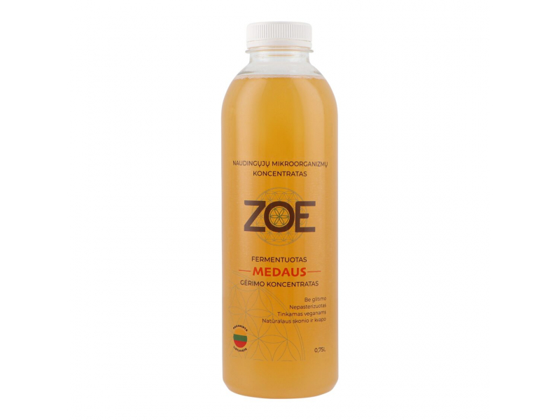 Piedāvājam ekskluzīvu UAB Ebiko produktu – tīru raudzētu dzērienu medus koncentrātu. Šis ir pirmais dziļās fermentācijas produkts Eiropā, kas ir bagāts ar labvēlīgām baktērijām, kas ražots, izmantojot unikālu, nepārspējamu tehnoloģiju.Medus ZOE atšķiras no citiem līnijas produktiem ar savu saldeno un patīkamo medus garšu, padarot to ideāli piemērotu tiem, kam nepatīk ZOE koncentrātu dabiskā garša.Neto svars: 0,75 l.Uzglabāšanas apstākļi: temperatūrā no +2°С līdz +18°С, no tiešiem saules stariem aizsargātā vietā. Pēc atvēršanas uzglabāt ledusskapī un izlietot 45 dienu laikā.Derīguma termiņš: skatīt uz iepakojuma.