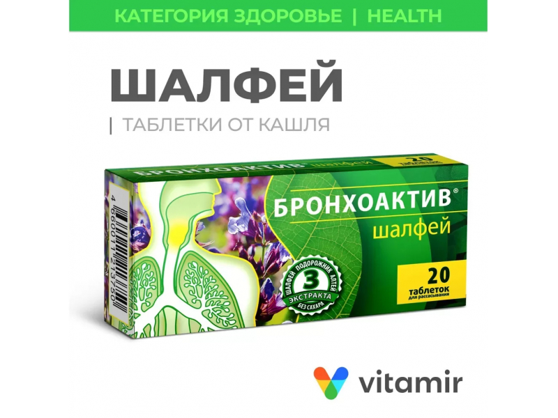 Шалфей Бронхоактив, 20 таблетокС подсластителем. Леденцы с алтей, подорожником и шалфеем.