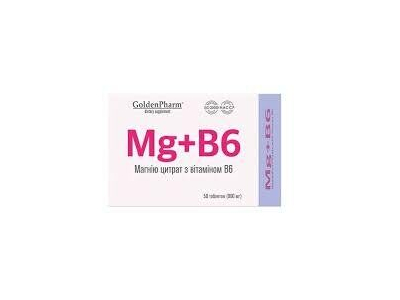 Magnija citrāts ar B6 vitamīnusastāvsSatur1 tablete (% NRV*)4 tabletes (% NRV*)Magnijs100  mg (26,6%)400mg (106,6%)Vitamīns B62 mg (142,8%)8 mg (571,4%)*NRV - uzturvielu atsauces vērtība Magnija citrāts, apjoma palielinātājs: mikrokristāliskā celuloze, glazētājviela: hidroksipropilmetilceluloze, pretsalipes vielas: taukskābju kalcija sāļi, silīcija dioksīds; piridoksīna hidrohlorīds.lietošanaBērniem no 14 gadu vecuma un pieaugušiem 1-2 tabletes 1-2 reizes dienā, ēšanas laikā. Lietošanas ilgums 14-30 dienas.