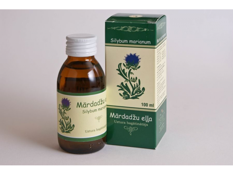 Mārdadža eļļa – tas ir ļoti bagāts bioloģiski aktīvu vielu komplekss, kuras sastāvā ietilpst flavonoīdi, neaizstājamas augstākās taukskābes – linolskābe, linolēnskābe, karotinoīdi, A, B, E, K vitamīni, antioksidanti. Šis produkts satur īpašu komponentu – silibinīnu, kurš nostiprina un reģenerē aknu šūnas.IETEICAMA: • Aknu un žults izvades ceļu funkciju (ciroze, hepatīts, aknu tauku distrofija, alkohola hepatīts) traucējumu gadījumos.• Toksisku vielu izvadīšanai no organisma.• Holesterīna līmeņa pazemināšanai asinīs.• Kuņģa un zarnu trakta darbības normalizēšanai.• Kapilāru stiprības un elastības uzlabošanai, uzlabo to caurlaidību.• Redzes uzlabošanai.• Sirds un asinsvadu saslimšanas riska samazināšanai.• Imūnās sistēmas nostiprināšanai.• Tai piemīt vispārspēcinoša iedarbība.• Pie apdegumiem un brūcēm.• Strutojošos procesos.• Pie stomatītiem, gingvītiem un faringītiem.• Pie ekzēmas, hiperkeratozēm, neirodermītiem.DEVAS UN LIETOŠANA: Lieto pa vienai tējkarotei 3 dienā pusstundu pirms ēšanas. Apdegumus un brūces iepriekš apstrādā ar jebkuru antiseptiķi, uz apstrādātās virsmas uzliek eļļā samērcētu marles saiti. Strutojošu procesu gadījumos pārsējus maina katru dienu. IEKŠĶĪGAI LIETOŠANAI: • Aknu un žults izvades ceļu funkciju (ciroze, hepatīts, aknu tauku distrofija, alkohola hepatīts) traucējumu gadījumos.• Toksisku vielu izvadīšanai no organisma.• Holesterīna līmeņa pazemināšanai.• Kuņģa un zarnu trakta darbības normalizēšanai.• Kapilāru stiprības un elastības uzlabošanai.• Redzes uzlabošanai.• Sirds un asinsvadu saslimšanas riska samazināšanai.• Imūnās sistēmas nostiprināšanai.• Pie stomatītiem, gingvītiem un faringītiem.DEVAS UN LIETOŠANA: Lietot pa vienai tējkarotei 3 reizes dienā pusstundu pirms ēšanas.ĀRĪGAI LIETOŠANAI: • Apdegumiem, brūcēm.• Strutojošu procesu gadījumos.• Pie ekzēmas, hiperkeratozēm, neirodermītiem.