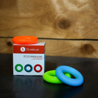 Komplektā ietilpst trīs gredzeni ar atšķirīgu pretestību (viegla, vidēja, spēcīga) iezīmes : diametrs : 7cm. biezums/platums1,7 cm materiāls : ļoti izturīgs silikons