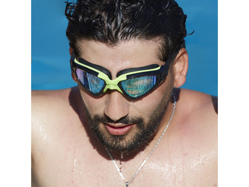 Swimming goggles designed for training PC lenses with 100% UV protection Anti-fog coating Large visual field Mono head strap with adjustment clip