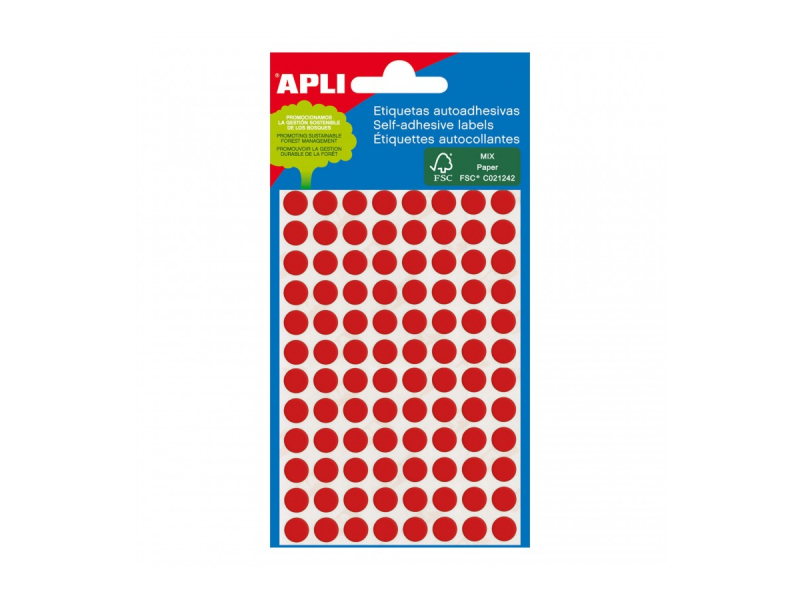 Apaļas uzlīmes APLI ar diametru 8mm, 3 loksnes, 288 sarkana krāsa