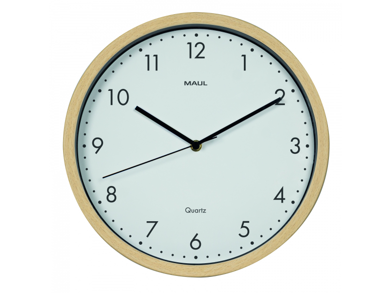 "MAULgrain" sienas pulkstenis apvieno mūžīgu dizainu, siltu koka izskatu un uzticamu tehnoloģiju. Tas rada mierīgu, koncentrētu atmosfēru un ir ideāli piemērots birojam vai mājas birojam. Funkcionāls, kluss un skaidrs – tieši tas, kas nepieciešams ikdienas darbam.