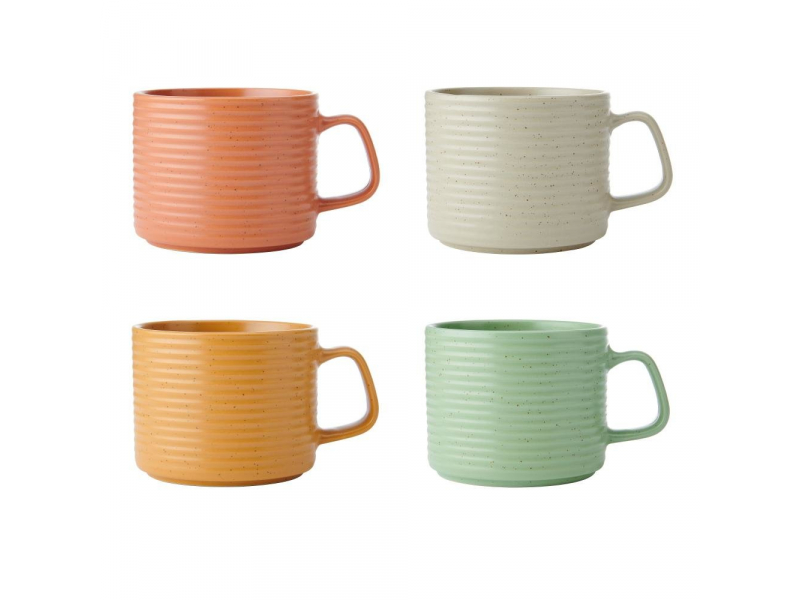 The KitchenCraft Idilica Stacking Stoneware Mug Set includes four mugs, each thoughtfully crafted to elevate your daily coffee or tea experience. Inspired by the beauty of nature, the stoneware mug set features four different Colours - mustard, terracotta, green, and beige - adding a touch of calm and positivity to any kitchen space. The mugs boast a unique wavy-textured design and a luxurious matte finish, making them a captivating addition to any kitchen or dining area. These stoneware mugs strike the ideal balance between comfort and elegance, providing a satisfying grip while exuding an air of refined simplicity. Each mug has a generous capacity of 400ml, ensuring you have ample room for any beverage, and are both microwave-safe and dishwasher-safe, allowing for convenient heating and effortless cleaning without compromising their appearance. Includes a 2-year guarantee. Make your kitchen space an area of tranquillity and positivity with the KitchenCraft Idilica collection. Immerse yourself in a world of stylish functionality where you will find an array of essential items, including storage jars, oil and vinegar bottles, silicone tools, and charming mug sets – all thoughtfully designed to elevate your culinary space.Key Features: KitchenCraft Stoneware Mugs, Set of four; mustard, terracotta, green, beige, Stackable design, matte finish, textured, Capacity: 400ml, Microwave safe, Dishwasher-safe, Wash thoroughly before first use, 2-year guarantee
