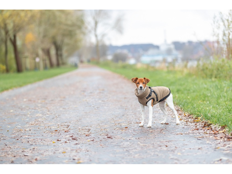 Apģerbs suņiem - Pirou ziemas mētelis ar iejūgu, S: 36 cm, smiltis Ziemeļu mētelis ar iejūgtiem Pirou. Produkta informācija: poliesteris, ar mikstu oderi, ar siltu papīru, nepārtraukts izdevums muguras daļā, elastīgā iela vēdera zonā, regulatīvācilpas pakalpajā. Izmērs S. Vēdera apkārtmērs: 50—54 cm. Muguras garums: 36 cm. Krāsa: smilšu.