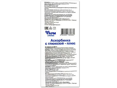 Glikoze, cukurs, askorbīnskābe (C vitamīns), kalcija stearāts (pretklumpju aģents).