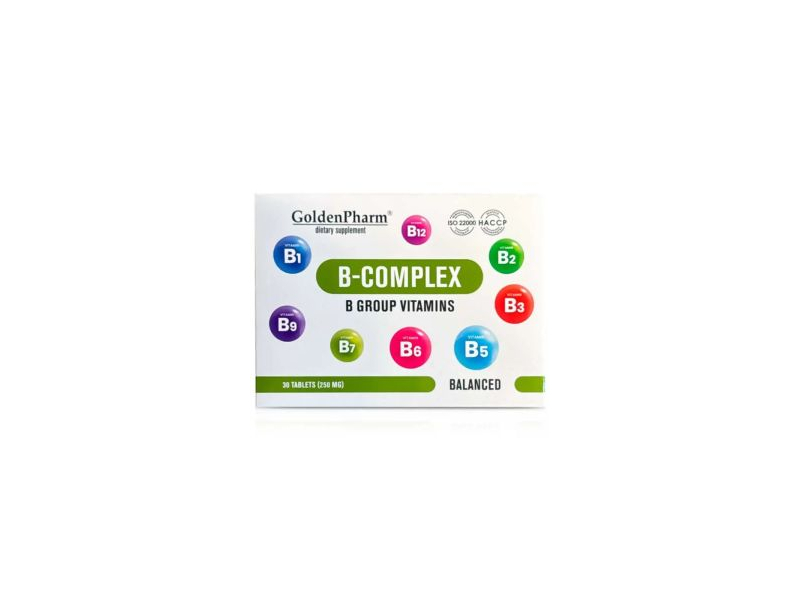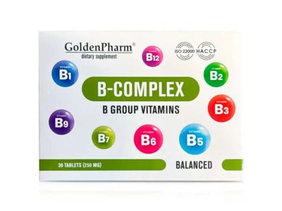 Golden Pharm B grupas vitamīnu komplekss ir uztura bagātinātājs, kas satur B grupas vitamīnu kombināciju. Produkts paredzēts kā papildu vitamīnu avots ikdienas uzturā un var būt daļa no sabalansēta dzīvesveida.