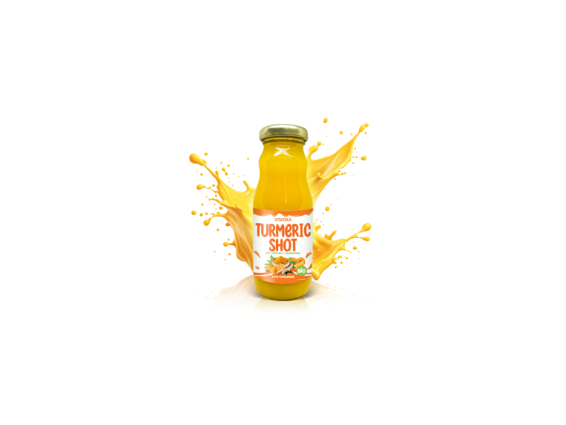 VITATEKA Kurkumas šots, 200 ml — dabīgs dzēriens ar mandarīnu sulu un kurkumu vispārējā tonusa un imunitātes uzturēšanai.