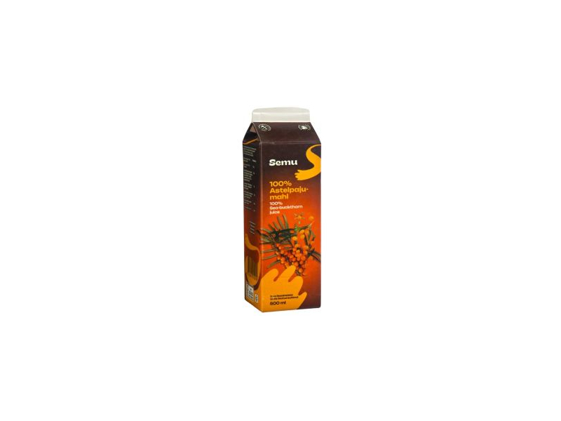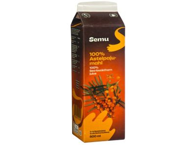 Semu 100% smiltsērkšķu sula ir gatavota no auksti spiestas biezeņa bez pievienota cukura un konservantiem. Smiltsērkšķis ir viena no vitamīniem un uzturvielām bagātākajām ogām, satur C, E un B grupas vitamīnus, karotinoīdus, bioflavonoīdus, minerālvielas, augļu skābes, omega taukskābes un daudzas neaizvietojamās aminoskābes. Augstais C vitamīna saturs palīdz stiprināt imūnsistēmu, novērst saaukstēšanos un cīnīties ar pavasara nogurumu. Uzturvērtība (100 ml): enerģētiskā vērtība — 199 kJ / 48 kcal, tauki — 3,8 g (piesātinātie — 2,6 g), ogļhidrāti — 2,0 g (cukuri — 1,9 g), olbaltumvielas — 0,6 g, sāls — 0,1 g. Sastāvs: smiltsērkšķu biezenis (100%). Lietošana: pirms lietošanas sakratīt. Uzglabāt istabas temperatūrā, sargāt no tiešiem saules stariem. Pēc atvēršanas uzglabāt ledusskapī.
