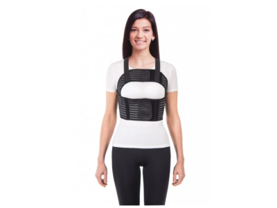 Bandāžai ir anatomiska forma, kas ļauj optimāli novietot pārsēju uz krūtīm, nodrošināta ar plecu siksnām drošai fiksācijai, īpašs viskozs elastīgs audums nodrošina mitruma noņemšanu no ķermeņa virsmas. Darbības princips: Nodrošina krūškurvja elastīgu fiksāciju. Sāpju mazināšana traumas, pēcoperācijas brūces vai rētas zonā, ieskaitot sāpes elpojot. Pateicoties pārsējam, tiek radīti optimāli apstākļi pēcoperācijas brūces sadzīšanai un pēcoperācijas rētu veidošanai. MATERIĀLA SASTĀVS: latekss - 25%, poliesters - 55%, poliamīda monopavediens - 10%, poliuretāna putas - 5%, kokvilna - 5%. Lietošanas indikācijas: pēcoperācijas periods Neasa un akūta krūškurvja trauma. Dažādas pakāpes un lokalizācijas starpribu neiralģija un miozīts. Muskuļu sasprindzinājuma novēršana slodzes laikā. Lietošanas instrukcija: Uzlieciet pārsēju uz apakšveļas vai tieši uz ķermeņa, guļot uz muguras, nofiksējiet pārsēja aizdari, izmantojiet pārsēja elastību, lai sasniegtu maksimālo efektu. Fiksācijas pakāpi un valkāšanas ilgumu nosaka ārsts. Nelietot pēc derīguma termiņa beigām. Partijas numura identifikācija ir balstīta uz ražošanas datumu. UZGLABĀŠANAS NOSACĪJUMI: uzglabāt istabas temperatūrā, sargājot no tiešiem saules stariem un mitruma. Kontrindikācijas: lokālas ādas slimības.