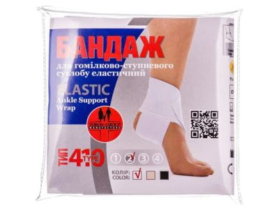 Pārsējs potītes locītavai Toros-Group elastīgs Type-410 Īpatnības: Potītes locītavas fiksācija, izmežģījumu, sastiepumu profilakse un ārstēšana, tūsku likvidēšana. Saišu traumas un potītes locītavas nestabilitāte, rehabilitācijas periods pēc ģipša. Hroniskas (profesionālās, sporta) slodzes uz potītes locītavu un Ahileja cīpslu. Izmērs - 2 Pēdas izmērs - 21 - 25 cm