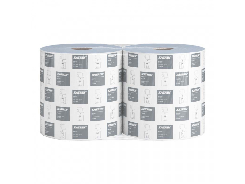 Katrin Plus, industriālais papīra dvielis ruļļos L2, 2-slāņu, 2 ruļļi/ iepakojumā, 42 iepak/paletē, zils, perforēts, rullis 26cm x 344m