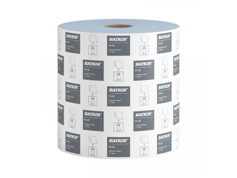 Katrin Plus, industriālais papīra dvielis ruļļos L2, 2-slāņu, 2 ruļļi/ iepakojumā, 42 iepak/paletē, zils, perforēts, rullis 26cm x 344m