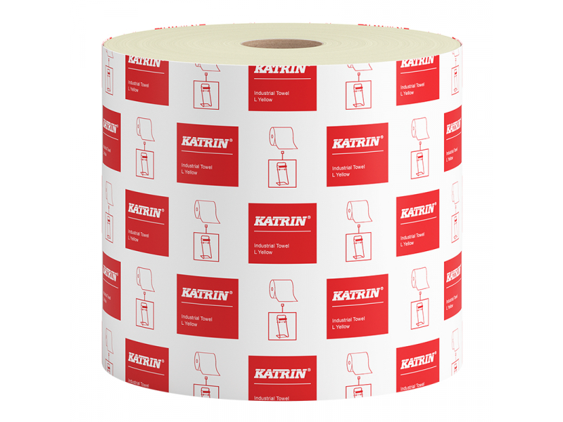 Katrin, industriālais papīra dvielis ruļļos L, 1-slāņa, 2 ruļļi/iepakojumā, 48 iepak/paletē, dzeltens, rullis 23.5cm x 470 m