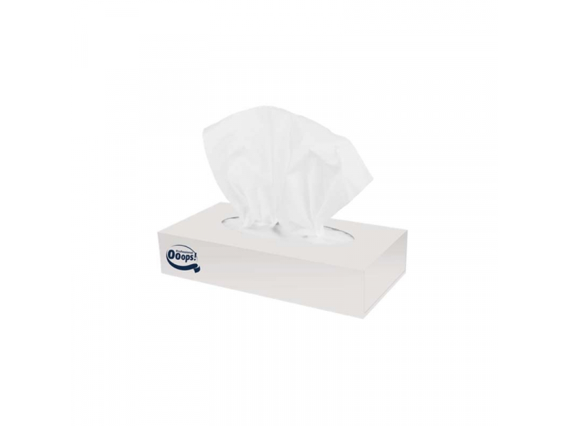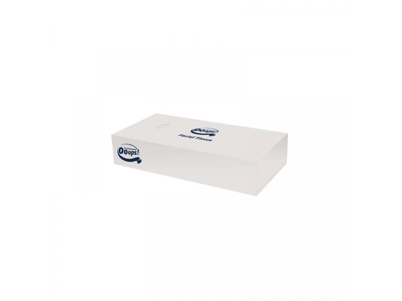 Ooops! Kosmētiskās salvetes, 2-slāņu, 100 loksnes/iepak, 40 iepak/kastē, 16 iepak/paletē, baltas, loksnes izmērs 21x20cm, FSC Mix Credit