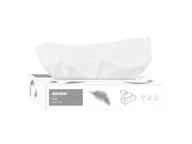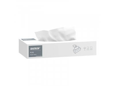 Katrin Plus Facial, kosmētiskās salvetes, 2-slāņu, 100 loksnes/kastītē, 40 kastītes/iepakojumā, 32 iepak/paletē, baltas, loksnes izmērs 21x20.5cm