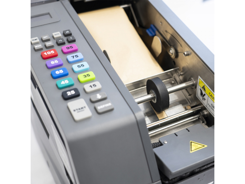 Ar ūdeni aktivizējamās līmlentes dozators, nodrošina līmlentes vienmērīgu samitrināšanu, dozēšanu un līmlentes nogriešanu.