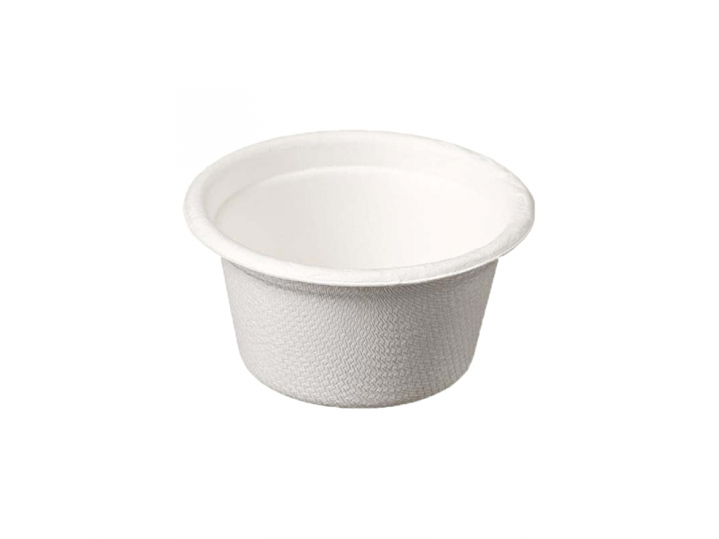 Cukurniedru šķiedras trauki mērcēm, 60 ml, 70 mm, apaļi, balti, 50 gab. iepakojumā, 2500 gab. kastē