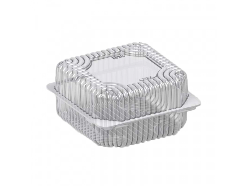Vienreizlietojamie trauki, taisnstūrveida, 107 x 107 x 62 mm, ar atliekamu vāku, caurspīdīgi, plastmasas, RPET, 50 gab. iepakojumā, 1200 gab. kastē
