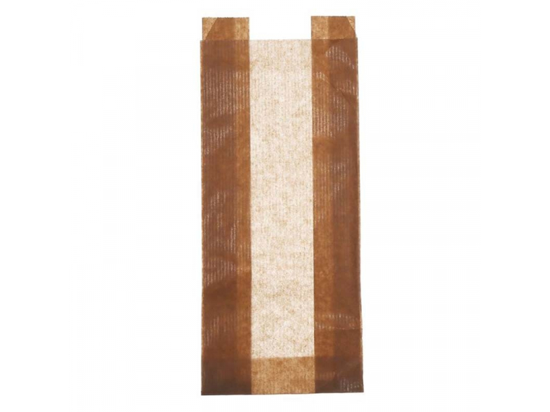 Papīra maisiņi, 35 g/m², 100 x 60 x 240 mm, brūni, ar PP logu, 1000 gab. iepakojumā