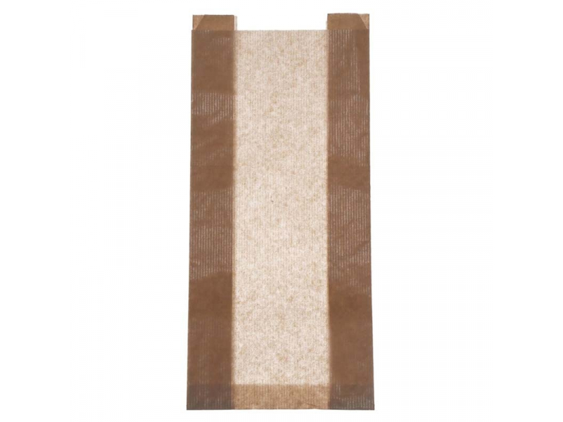 Papīra maisiņi, 32 g/m², 160 + 75 x 350 mm, brūni, ar PP logu, 1000 gab. iepakojumā
