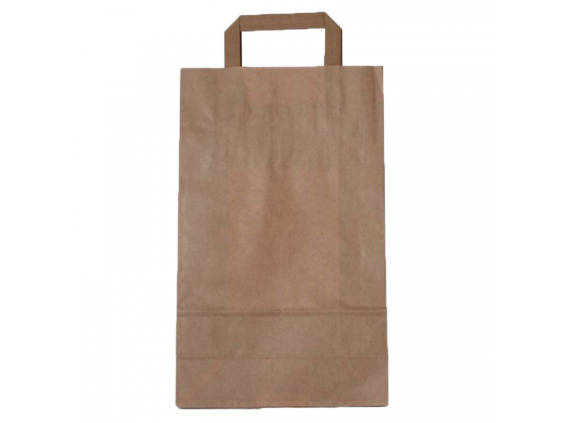 Papīra maisiņi, 70 g/m², 220 x 110 x 300 mm, brūni, ar plakanām rokturiem, 50 gab. iepakojumā, 250 gab. kastē