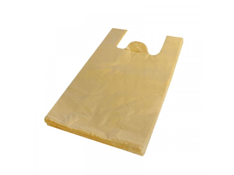 Plastmasas iepirkumu maisiņi ar rokturiem HDPE maiss ar rokturiem, 50my, dzeltens, 35+16x64cm