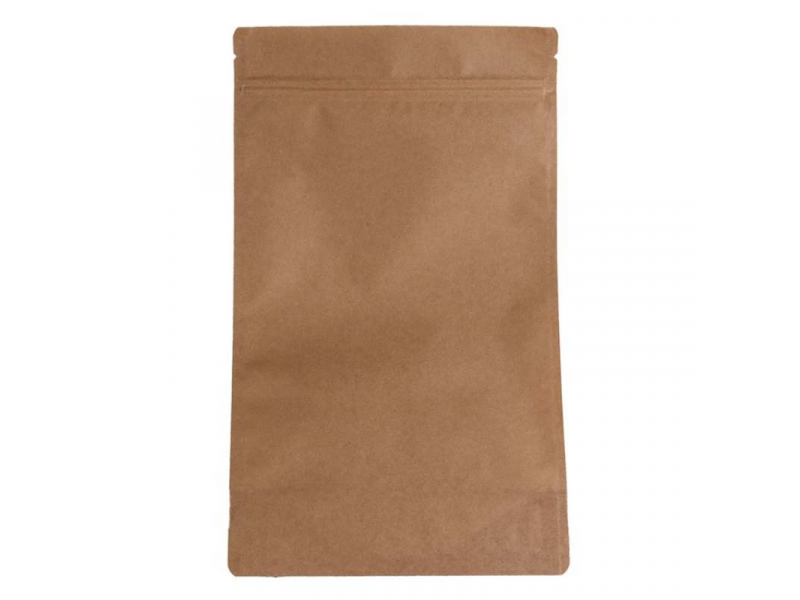 Vienreizlietojamie Doypack maisiņi, 160 x 80 x 270 mm, 750 ml, brūni, PAP 40 mk, PET 12 mk, PE 50 mk, 100 gab. iepakojumā, 2000 gab. kastē