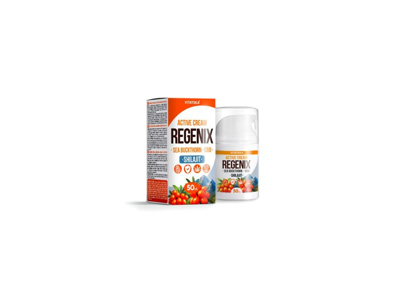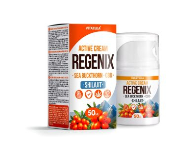 Regenix krēms Vitateka ir aktīvs ādas kopšanas krēms ar smiltsērkšķi, CBD un šiladžitu (mumijo). Piemērots ikdienas lietošanai ādas kopšanas rutīnā.