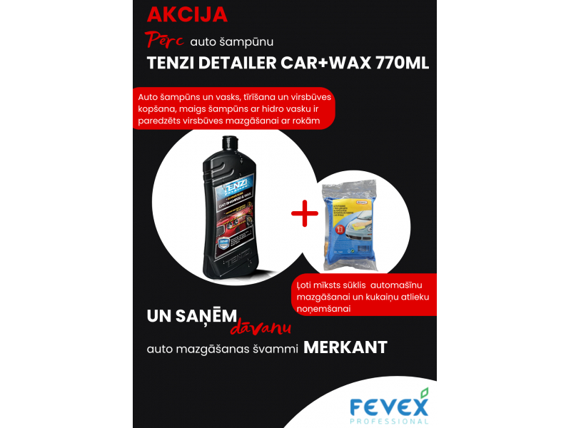 "TENZI Detailer CAR+WAX 770ml – Profesionāla auto detaļu kopšanas un vax aizsardzība ar dāvanu sūkli: efektivitāte, inovācija, ekonomija!"