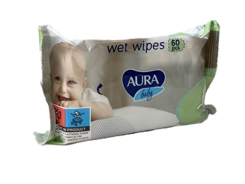 Mitrās salvetes Aura Baby, 60 gab