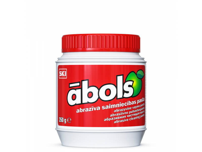 ĀBOLS abrazīvā tīrīšanas pasta ar patīkamu ābola aromātu, kas paredzēta trauku, izlietņu, flīžu, grīdas segumu un citu ūdensizturīgu cietu virsmu tīrīšanai.