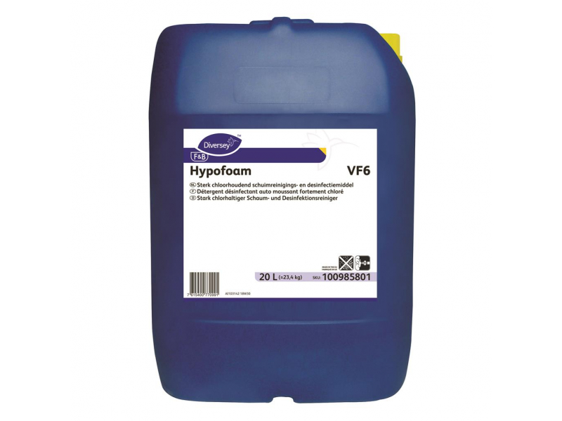 Apraksts Diversey Hypofoam VF6 ir sārmains putekļsūcējs ar augstu aktīvā hlora saturu, kas paredzēts ikdienas un periodiskai virsmas tīrīšanai pārtikas, piena un bezalkoholisko dzērienu rūpniecībā. Tās sastāvs ļauj efektīvi noņemt visdažādākos pārtikas piesārņotājus, ieskaitot augu un dzīvnieku taukus, ieteicams ikdienas mazgāšanai dārzeņu pārstrādē, konservēšanā, vīndarībā un vieglo dzērienu ražošanā. Hipofoamu izmanto grīdu, sienu, griešanas galdu, saldētavu, konveijeru un cita aprīkojuma tīrīšanai.