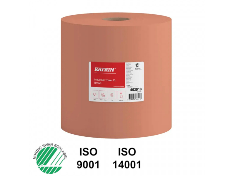 Apraksts Katrin Industrial Wipes Roll Large 1000 Metres 1-Ply Brown. Viena slāņa brūnā krāsā, pārstrādāta šķiedru bāzes rūpnieciskā žāvēšanas papīrs, kas atbilst ikdienas žāvēšanas prasībām lielākajā daļā nozaru. Īpaši piemērots viskoziem šķidrumiem, piemēram, eļļai un taukiem. Sertificēts saskaņā ar Nordic Swan Eco Label. Ruļļa izmēri: Ø 370 mm, augstums (platums) 320 mm, serdes diametrs Ø 58 мм. Ruļļa garums 1000 m (bez perforācijas). Cena norādīta par 1 rulli. EAN 7316978463918 PRODUKTA DATU KARTE Turētāji: ML54930, ML54909