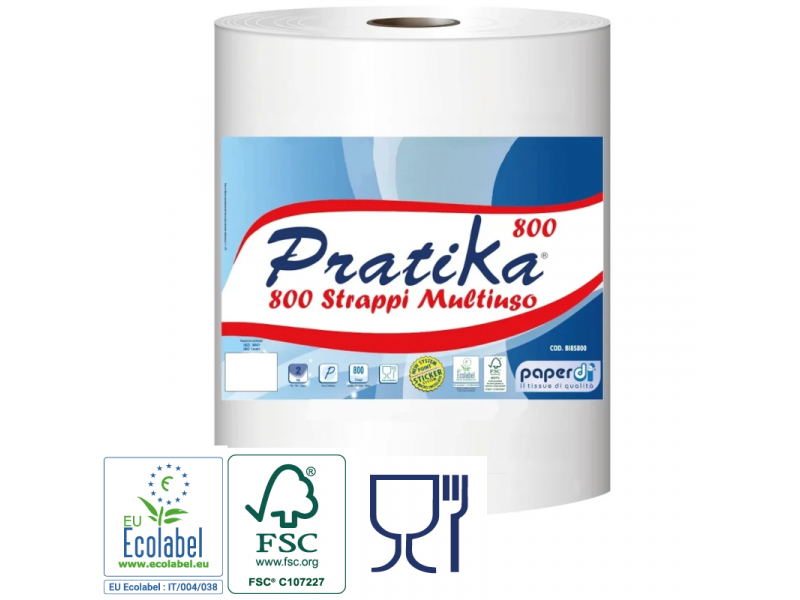 Apraksts Divu slāņu, kvalitātes papīra tīrīšanas materiāls, baltā krāsā. Izgatavots no tīras celulozes. Universāls papīrs, kas ir lieliski piemērots gan šķidrumu uzslaucīšanai, gan roku nosusināšanai. Lieliskas absorbējošas īpašības. Salvetes pēc lietošanas neatstāj pūkas. Ruļļa izmēri: Ø 255 mm, augstums 228 mm, serdes diametrs Ø 50 мм Ruļļa garums 200 m. (800 salvetes ar izmēru 228x250 mm) Sertificēts: EU Ecolabel, FSC Ražots Itālijā. EAN 8013824880064