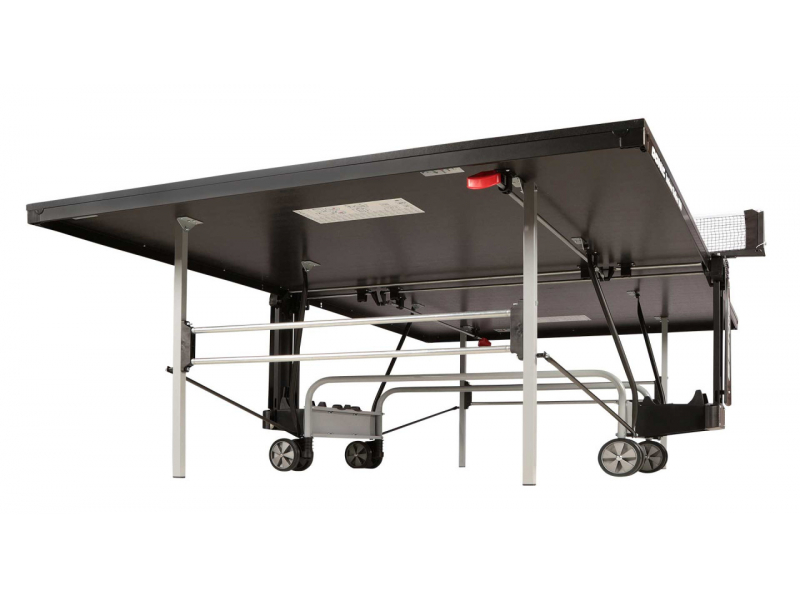 Tenisa galds lietošanai telpās. 19 mm skaidu plātnes ar 36 mm metāla apmali; viegli un droši salokāms mehānisms; rāmis - tērauds ar 25 mm biezu pulverveida pārklājumu; stiprinātas galda kājas ar metāla balstiem; 4 dubultgumijas skrituļi 128 mm diametrā; fiksētais tīkls; paplāte raketes un bumbas; izmēri salocīta galda : 152,2 x 69 x 163 cm spēles virsmas izmēri : 274 x 152,5 x 76 cm var spēlēt ar vienu spēlētāju, salocīt uz pusēm. atbilst saskaņotajiem Eiropas drošības standartiem en 14468 svars : 73 kg