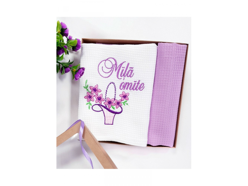 Virtuves dvieļu komplekts ar izšuvumu [MĪĻĀ OMĪTE]