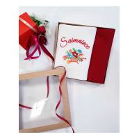 Virtuves vafeļu dvieļu komplekts izrotāts ar izšuvumu un iepakots kastē. Koša dāvana svētkiem. Komplektā: vafeļu dvielis 45х80 cm ar izšuvumu, vafeļu dvielis 45х80 cm bez izšuvuma Pēc jūsu pieprasījuma var būt izšūts Jūsu uzraksts jebkurā valodā. Lai to pasūtīt lūdzam: 1) izvēlēties izšuvuma paraugu 2) norādīt savu tekstu ailē IZŠUVUMA TEKSTS Diegu krāsas tiek izvēlētas atkarībā no izvēlētā komplekta krāsas un izšuvuma parauga, ja Klients nenorādīja citu informāciju. Izšuvums tiek taisīts ar izšuvuma mašīnu.