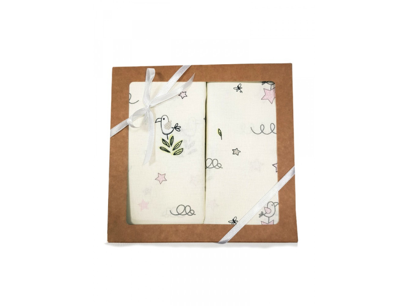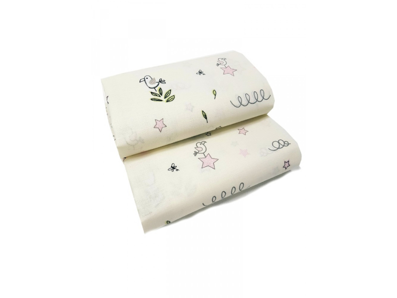 Kokvilnas autiņš 85x85 cm BIRDY pink